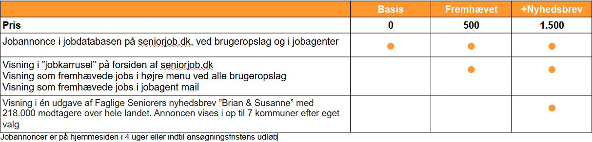 Her kan virksomheder slå ledige stillinger op, som egner sig til seniorer på efterløn, seniorpension eller folkepension.